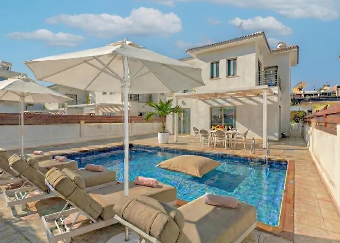 La Fig Tree Beach Villa Five Protaras ofrece fácil acceso a lugares turísticos como el Higueral, situado a unos 5 minutos a pie. Esta villa, que ofrece a sus huéspedes Wi-Fi y un aparcamiento privado gratuito, está a 6 km de la Playa Trinity Beach.
